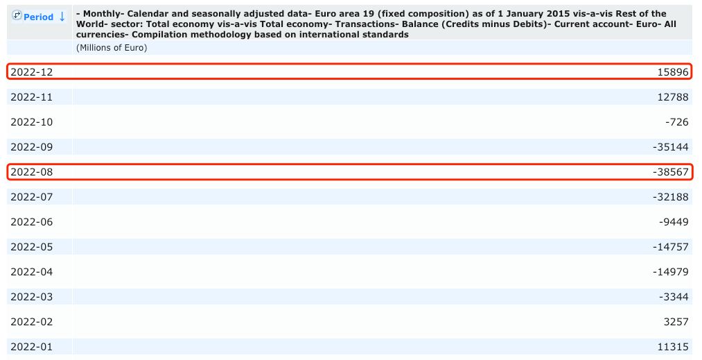 歐元區經常賬戶數據 來源:歐洲央行官網