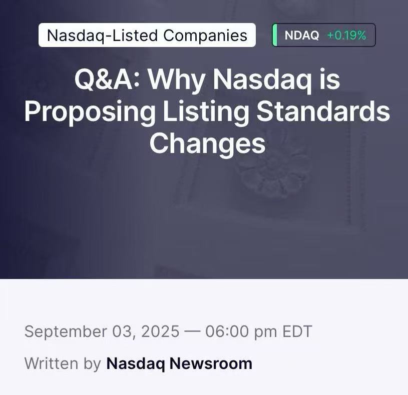 當地時間9月3日,納斯達克證券交易所(以下簡稱“納斯達克”)在官網宣布,提議修改上市標準,旨在解決美國市場環境下的上市公司流動性等問題。此次修訂不僅提高了首次公開募股(IPO)階段的企業最低公眾持股量規模和募資金額門檻,還針對未能達標的企業制定了更嚴格的停牌退市機制。
