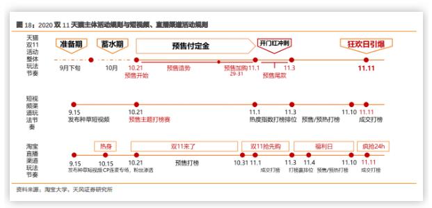 第一波為“天貓雙11搶先購”,10.21-10.31為定金支付階段;11.01-11.03為第一波正式活動也即尾款支付階段;