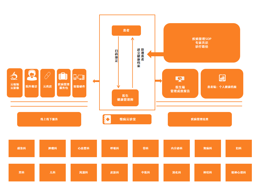 疾病診療過程是多個環節組成的,線上服務與線下服務結合,在預防、診斷、治療、康復各個環節都做好銜接,打造流程的閉環才能發揮出更大的能量,創造真正的價值。“真正的慢病管理在我的標準里是對結果負責,這是我對每一個疾病的要求。”醫聯創始人、CEO王仕銳曾在接受媒體采訪時表示。