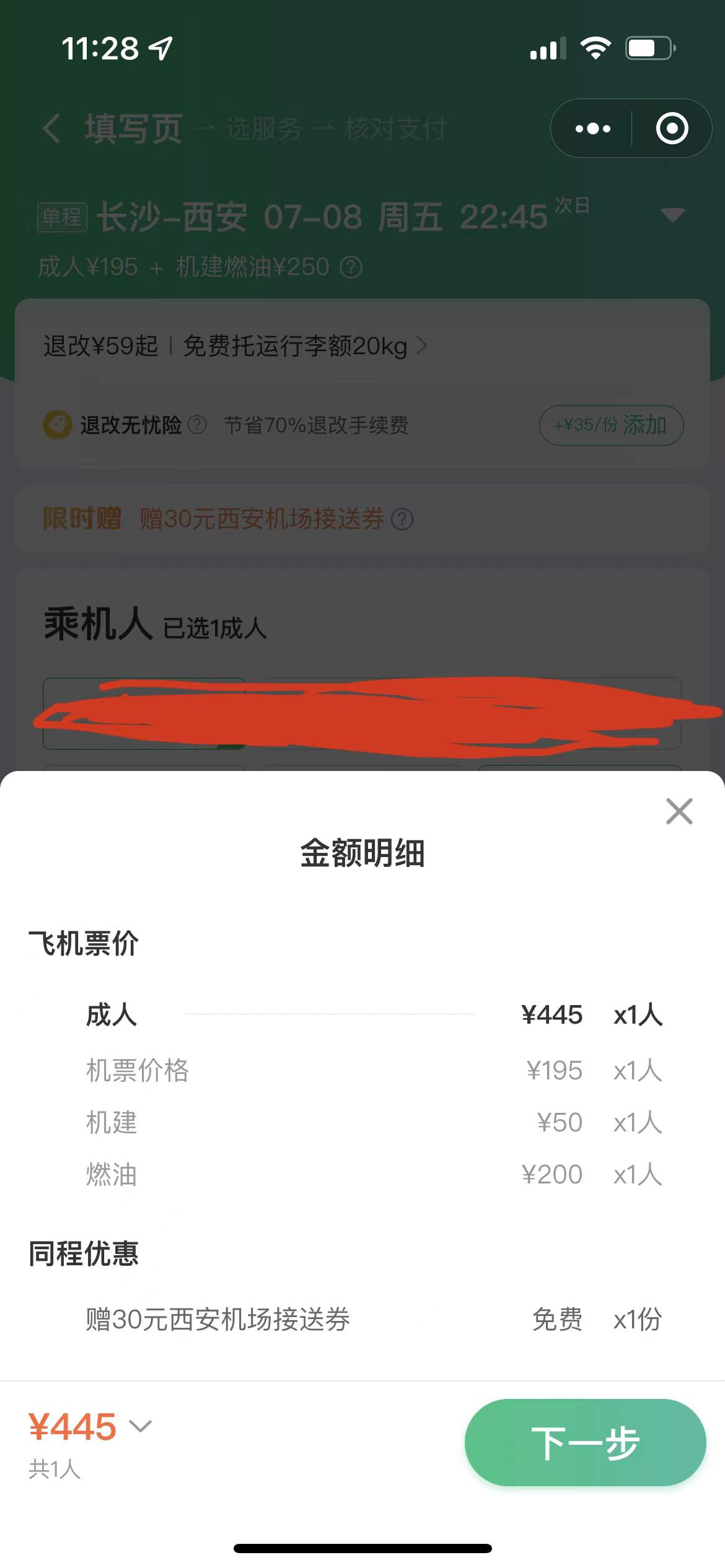 7月5日,記者在同程旅行搜索票價發現,7月6日廣州出發前往貴陽、7月7日貴陽出發前往廣州、7月8日長沙出發前往西安的機票裸價均未超過200元,而燃油附加費和機場建設費價格已經達到250元。