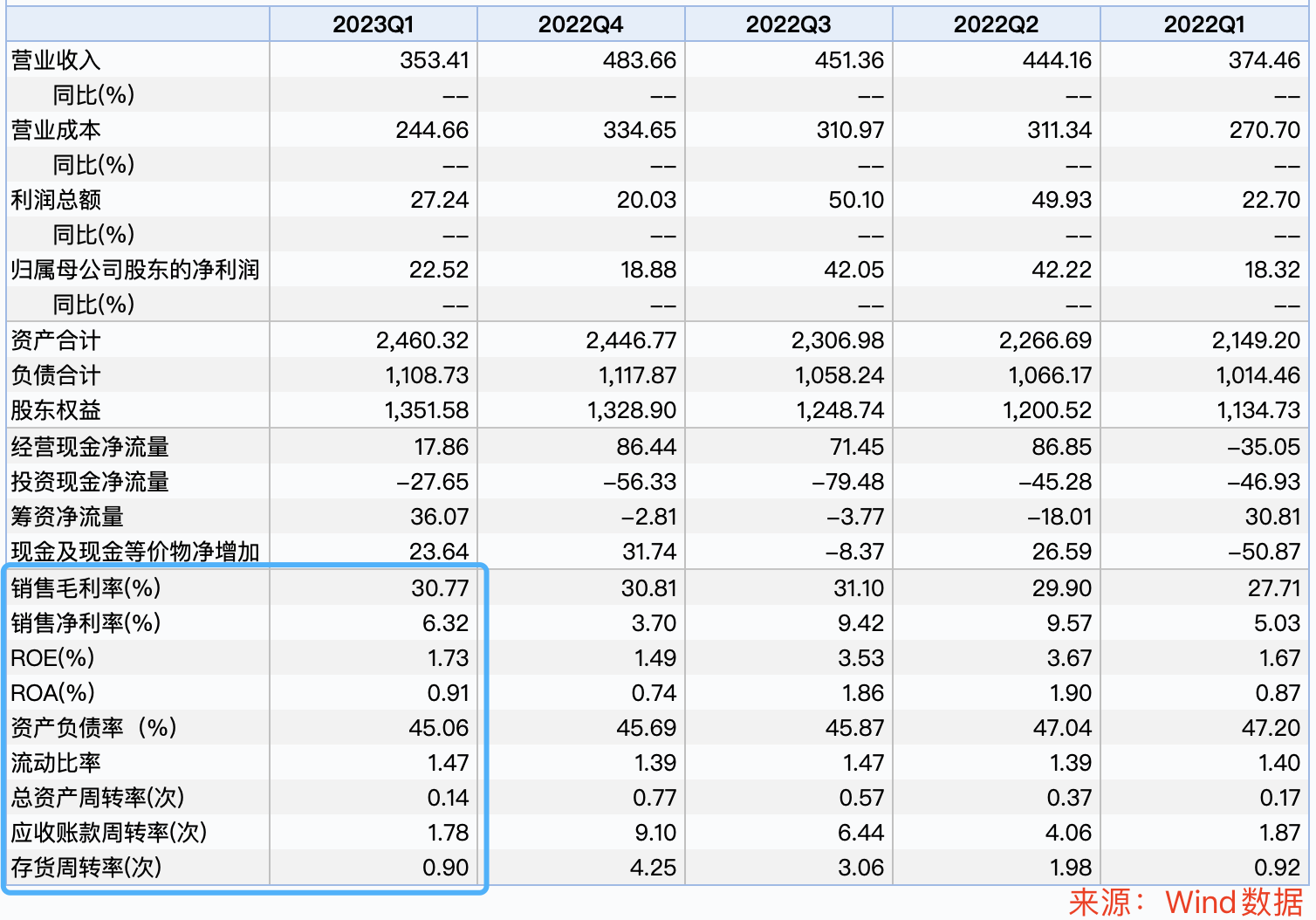 行業一季度利潤總額為27.24%,高于去年同期22.70%水平,銷售毛利率30.77%,銷售凈利率6.32%,存貨周轉率0.90%。