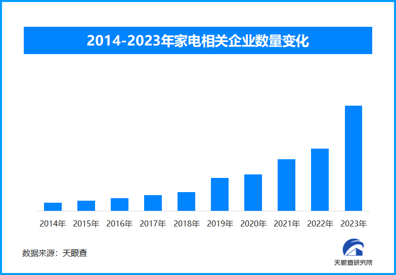 天眼查專業版數據顯示,截至目前,現存與家電相關的企業超過1921.9萬家,其中2024年1月份到10月份以來的企業注冊數量為404.3萬家。從企業年度注冊量可以看出,近十年來,家電相關企業的注冊量一直呈現出穩健的上升趨勢,并于2023年達到峰值,注冊量超過415.8萬家。可以看到,無論是消費還是生產銷售等各條鏈路,家電行業都呈現出非常喜人的增長態勢。