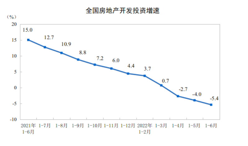 前6個(gè)月全國(guó)房地產(chǎn)開(kāi)發(fā)投資下降5.4%