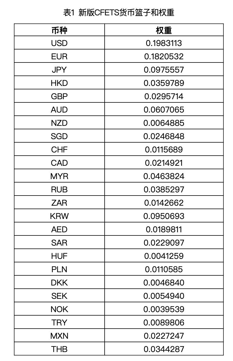 12月30日,中國外匯交易中心(以下簡稱“交易中心”)發布公告,為進一步增強人民幣匯率指數貨幣籃子代表性,交易中心計劃根據《CFETS人民幣匯率指數貨幣籃子調整規則》(中匯交公告〔2016〕81號),調整CFETS人民幣匯率指數和SDR貨幣籃子人民幣匯率指數的貨幣籃子權重。新版指數自2023年1月1日起生效。