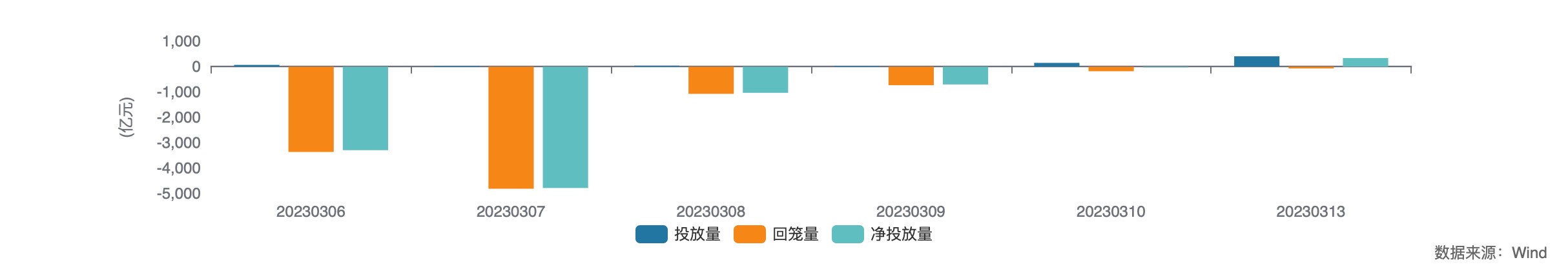 從近期公開市場操作來看,上周央行逆回購投放量大幅下降,持續回籠資金。前四個交易日(3月6日至3月9日)逆回購單日操作規模不足百億元,分別為70億元、30億元、40億元、30億元。3月10日操作規模又有所提升,為150億元。