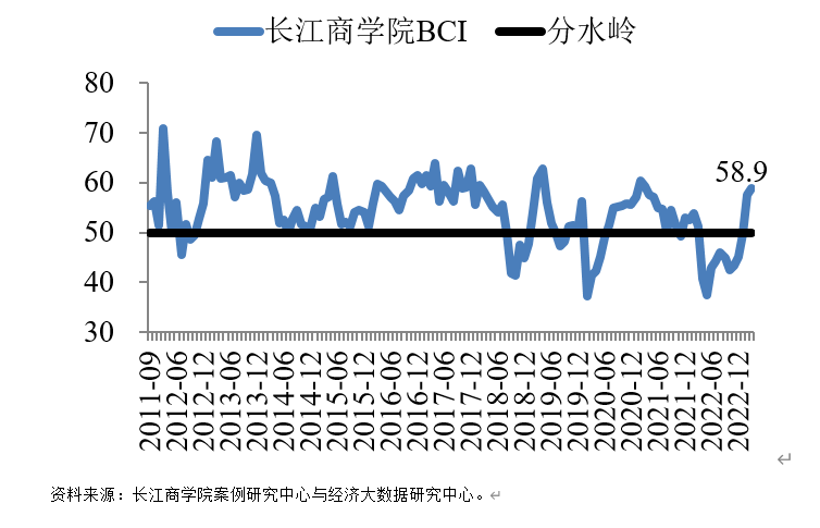 我國經濟持續整體好轉態勢明顯,3月份的“長江商學院中國企業經營狀況指數”(以下簡稱BCI指數)為58.9,與2023年2月的57.6相比有小幅上升。3月BCI指數延續上月抬升勢頭,經過連續5個月上升,現在指數已接近60的水平,這意味著BCI指數調查范圍內企業對6個月內的發展趨勢持相對樂觀的態度。