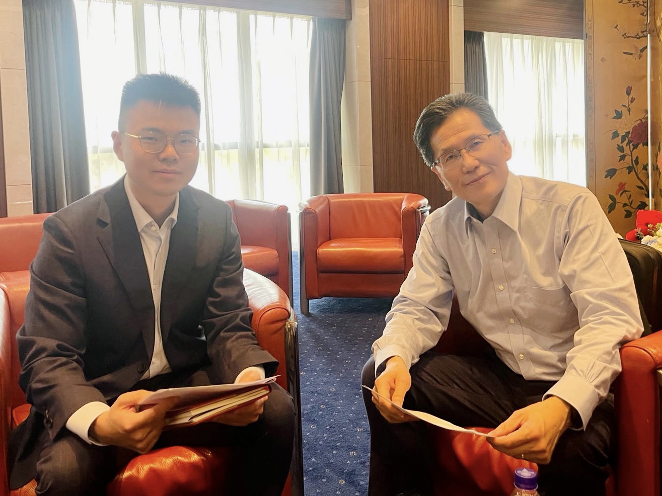《證券日報》記者專訪中歐國際工商學院教授朱天(右)
