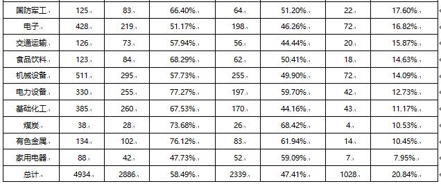 5、2.55%金融業(yè)(129家)上市公司貢獻了43.76%的凈利潤