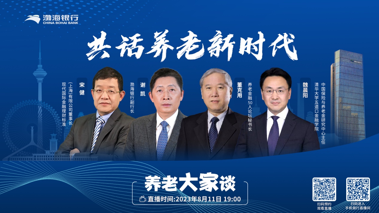 8月11日晚19:00,渤海銀行推出了“養(yǎng)老‘大家’談共話養(yǎng)老新時(shí)代”線上訪談節(jié)目,邀請(qǐng)現(xiàn)代國(guó)際金融理財(cái)標(biāo)準(zhǔn)(上海)有限公司董事長(zhǎng)宋健教授擔(dān)綱對(duì)話主持人,與渤海銀行副行長(zhǎng)謝凱先生、養(yǎng)老金融50人論壇秘書長(zhǎng)董克用教授、清華大學(xué)五道口金融學(xué)院中國(guó)保險(xiǎn)與養(yǎng)老金研究中心主任魏晨陽(yáng)教授,共同圍繞養(yǎng)老熱點(diǎn)話題暢談各自專業(yè)見解。訪談受到公眾廣泛關(guān)注,節(jié)目線上觀看量將近100萬(wàn)人次。