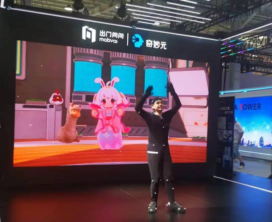 出門問(wèn)問(wèn)展區(qū)大屏幕前,身著動(dòng)捕服裝的工作人員正跟隨音樂(lè)舞動(dòng)身姿,她背后大屏幕上軟萌的3D數(shù)字人也隨之翩翩起舞。張佳欣介紹,奇妙元最輕量的技術(shù)解決方案,只用一個(gè)手機(jī)攝像頭就可以驅(qū)動(dòng)數(shù)字人的動(dòng)作、表情,用戶能夠讓企業(yè)像做PPT一樣輕松制作數(shù)字人視頻和直播。