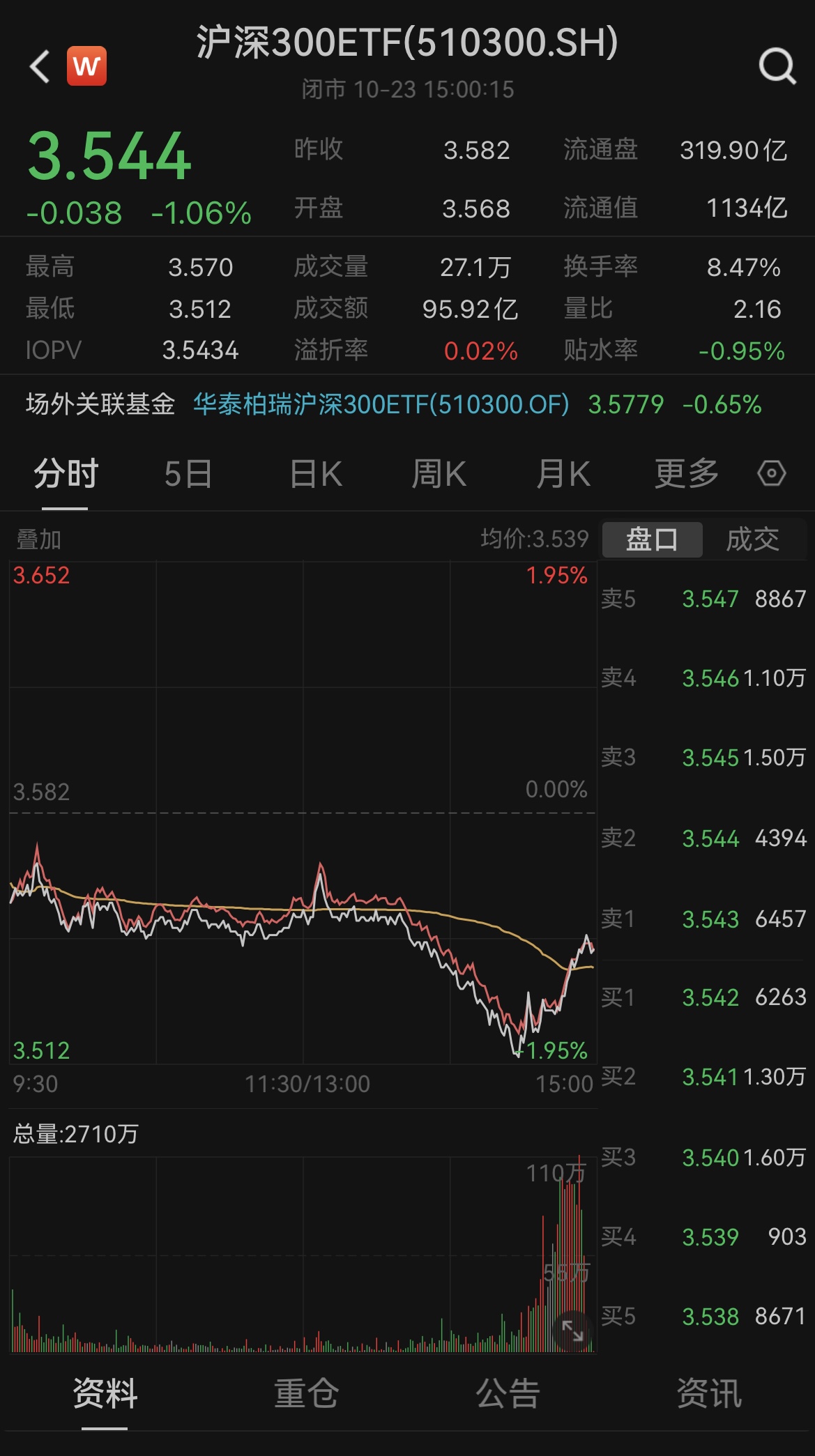 10月23日尾盤,華泰柏瑞滬深300ETF、南方中證500ETF、華夏上證50ETF等多只ETF成交量突然放大。