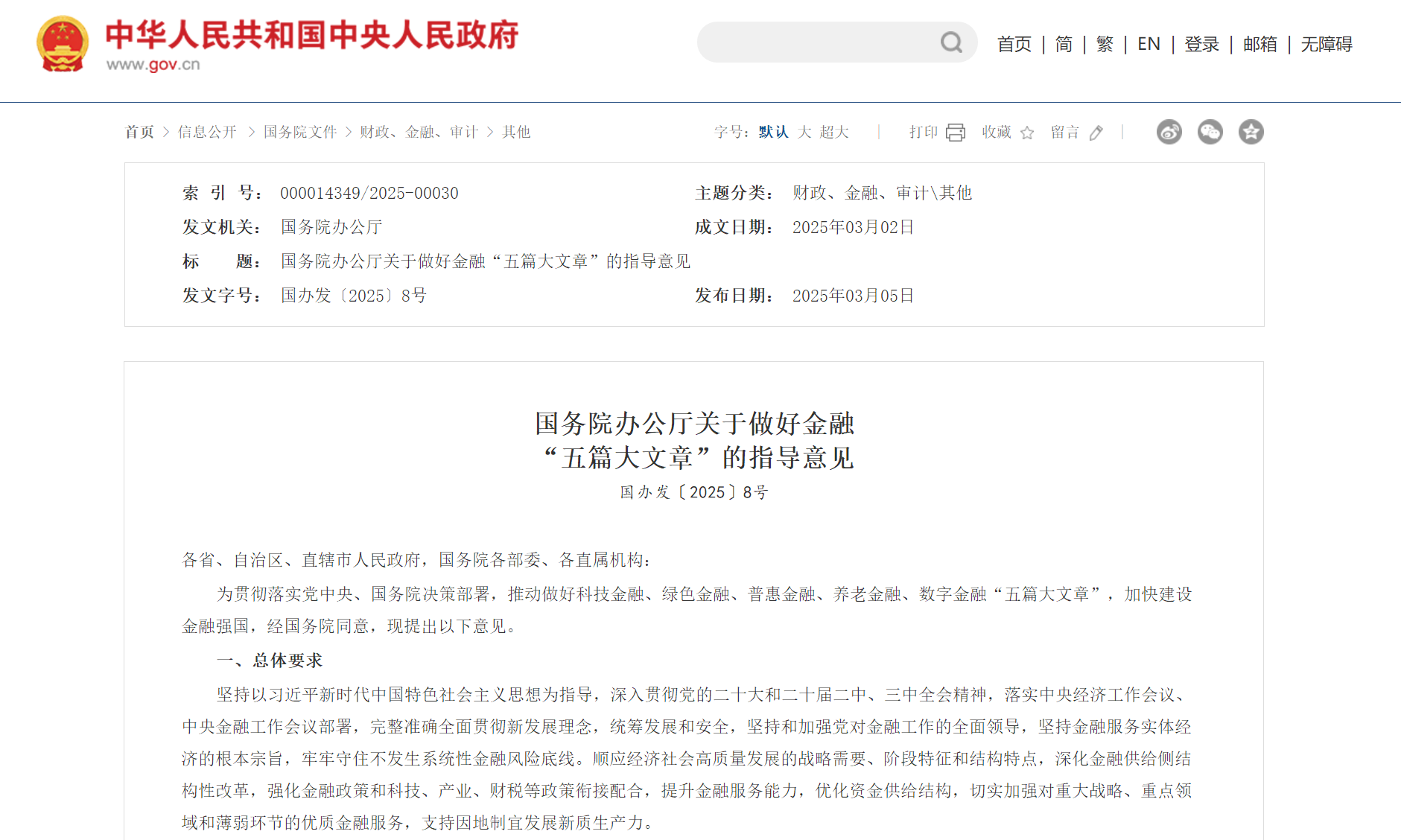國務(wù)院辦公廳關(guān)于做好金融“五篇大文章”的指導(dǎo)意見