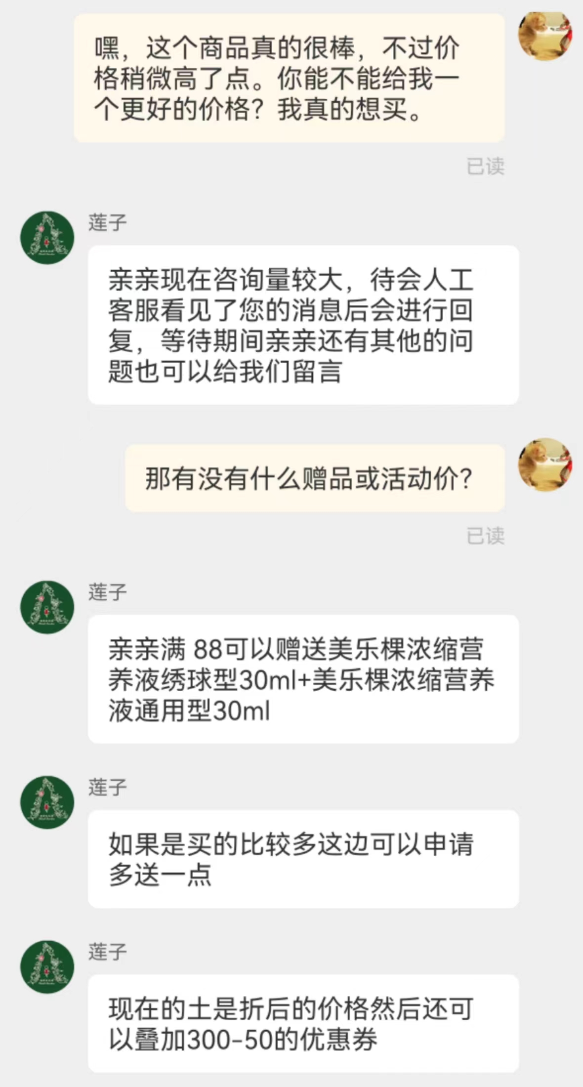 天貓也推出“AI講價(jià)小助手”,讓服務(wù)“卷”起來。該功能能通過智能算法,分析商品的歷史價(jià)格、市場趨勢(shì)以及賣家的定價(jià)策略,自動(dòng)生成講價(jià)建議。《證券日?qǐng)?bào)》記者隨機(jī)勾選商品加入購物車,AI講價(jià)小助手便自動(dòng)與賣家進(jìn)行協(xié)商,并能通過贈(zèng)品、活動(dòng)價(jià)等迂回的方式與其“周旋”。