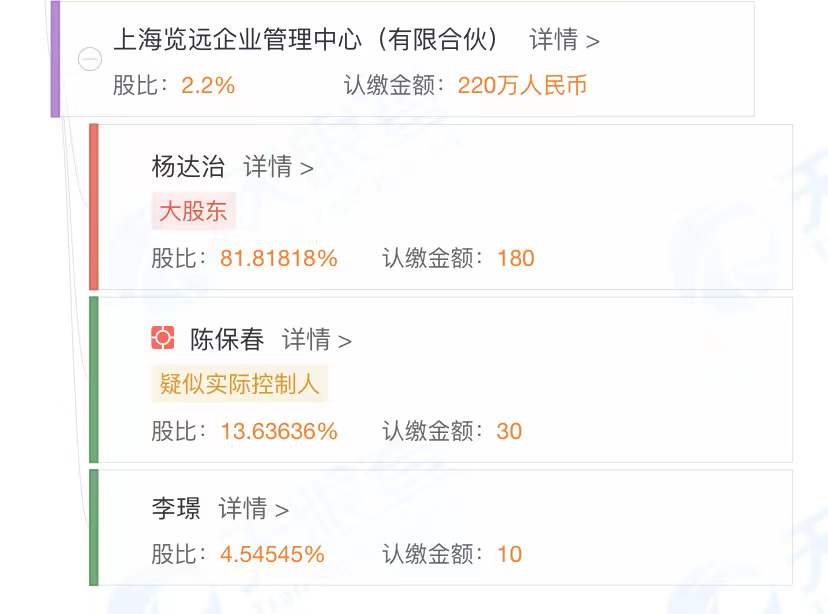 公開資料顯示,新增的上海覽遠企業管理中心(有限合伙)成立于2021年12月8日,股東分別為楊達治、陳保春和李璟。具體來看,上海覽遠企業管理中心(有限合伙)合計認繳220萬元,其中,楊達治、陳保春、李璟三人分別認繳180萬元、30萬元、10萬元,合計持有睿遠基金2.2%股權,成為睿遠基金新進的第十大股東。
