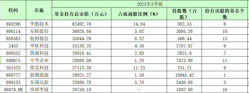 三季度公募基金還新進持有了多只個股,從排名前50榜單來看,最低持有市值在4500萬元以上;其中,持有市值超過1億元的有18只。具體來看:華勤技術以6.25億元的持有市值排名居首,東睦股份、航材股份、華軟科技、凱盛科技、中華企業和儒競科技等9只個股持有市值在2億元至4億元之間。