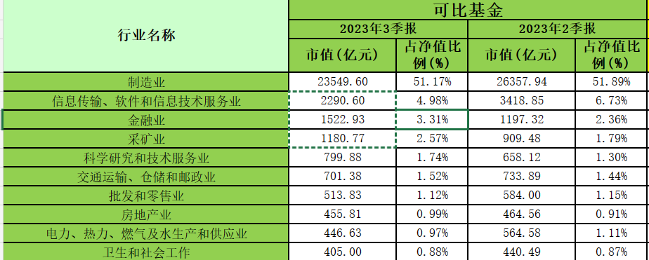 相較二季度,三季度公募基金依然對制造業、信息傳輸、金融業和采礦業等板塊持續青睞。天相投顧數據顯示,三季度公募在制造業板塊的持有市值高達2.3萬億元,在信息技術、金融業和采礦業的持有市值分別為2290.60億元、1522.93億元、1180.77億元。