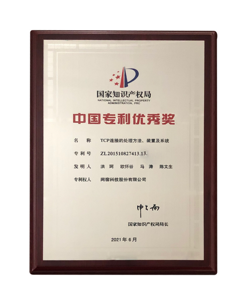 近日,國家知識產權局公布了一批在技術方面表現突出的企業,其中,網宿科技股份有限公司(簡稱:網宿科技)憑借“TCP連接的處理方法、裝置及系統”專利(專利號:ZL201510827413.1),榮膺“中國專利優秀獎”。