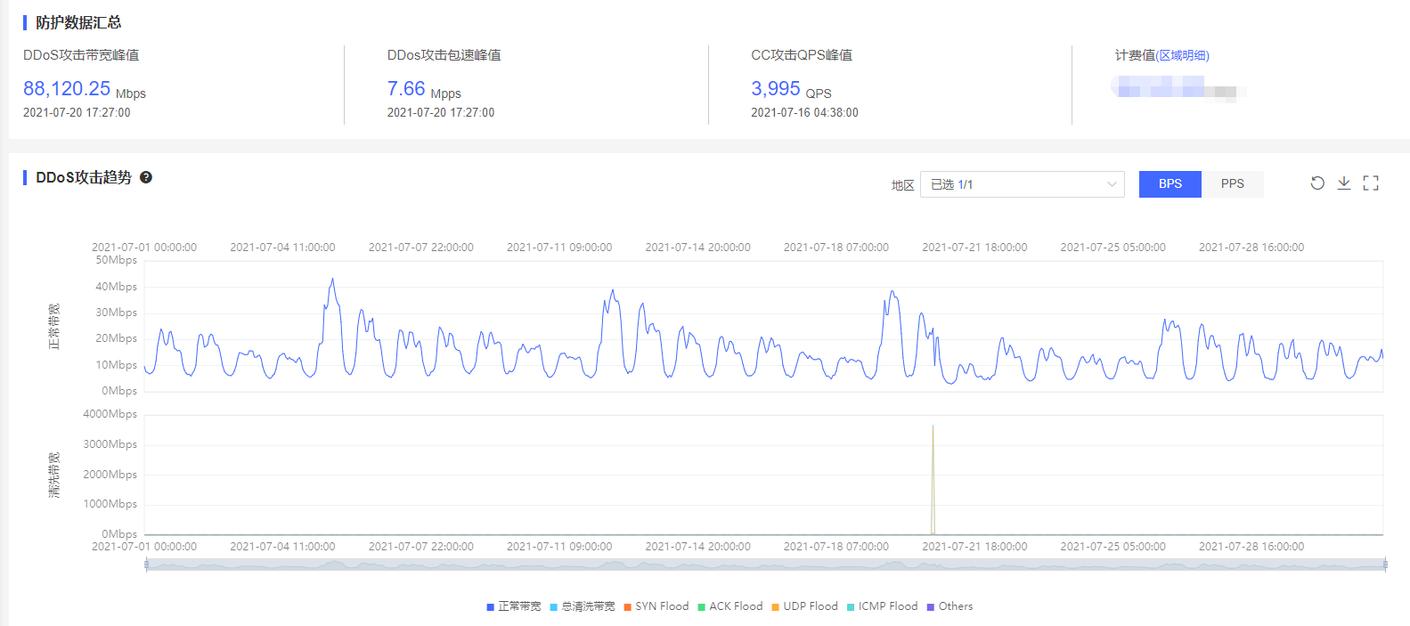圖片說明:某省級媒體客戶DDoS攻擊防護效果圖