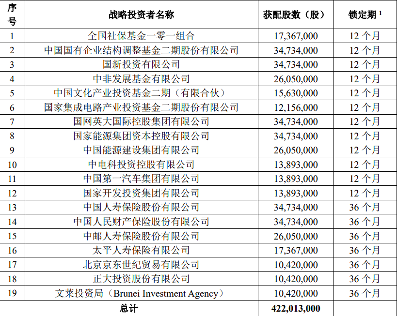 從中國移動的戰略配售方面來看,陣容同樣“豪華”,戰略投資者的選擇在充分考慮投資者資質以及和發行人長期戰略合作關系等因素后綜合確定,最終由包括社保基金、國調基金、國新投資、國家電網、國家能源集團、國家電網、國家能源集團在內的19家機構組成,累計獲配4.22億股,累計斥資243億元,約占綠鞋全額行使后發行總量的43.39%。其中還吸引了中國人壽、人保財險、中郵人壽、太平人壽四家保險機構。