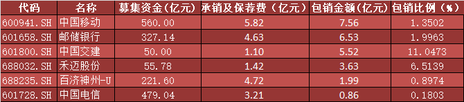 至此,中國移動網上、網下投資者未繳款認購股數全部由聯席主承銷商包銷,聯席主承銷商包銷股份的數量為1313.1萬股,包銷金額為7.56億元,創A股棄購金額新高,占綠鞋全額行使后發行規模的比例為1.35%。不過,雖然看起來棄購金額龐大,但中國移動的券商包銷比例為1.3502%,與“最貴新股”禾邁股份的6.5139%高包銷比例相差甚遠。