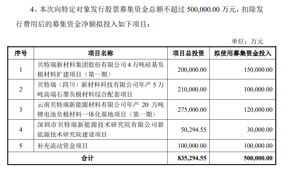 圖片來源:貝特瑞:2022年度向特定對象發行股票募集說明書(草案)