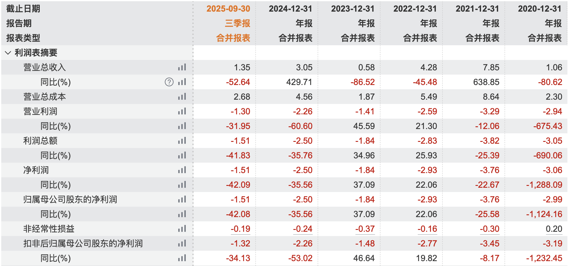 盡管股價大幅上漲,但ST中迪的經(jīng)營狀況依然嚴(yán)峻。根據(jù)公司披露的財務(wù)數(shù)據(jù),2025年前三季度,該公司營業(yè)收入為1.35億元,同比下降52.64%;利潤總額為-1.51億元,同比下降41.83%。更為嚴(yán)峻的是,ST中迪2022年度、2023年度、2024年度三個會計年度扣除非經(jīng)常性損益前后凈利潤孰低者均為負(fù)值,且2024年度審計報告顯示公司持續(xù)經(jīng)營能力存在重大不確定性。這導(dǎo)致公司股票被繼續(xù)實施其他風(fēng)險警示。