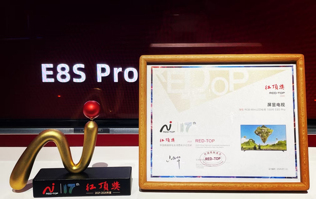 12月17日,第17屆中國高端家電趨勢發布暨紅頂獎頒獎盛典在北京首鋼園?SoReal科幻樂園舉行,本屆紅頂獎的主題為“耀·不凡”,聚焦高端家電的價值彰顯與行業升級。海信RGB-MiniLED電視E8SPro憑借“光色同控”的關鍵技術突破,打造極致畫質體驗,一舉斬獲電視行業唯一的紅頂獎大獎,海信激光電視探索X1Ultra榮獲提名獎。海信電視已經連續7年閃耀紅頂獎舞臺,彰顯了在高端顯示領域的引領地位。