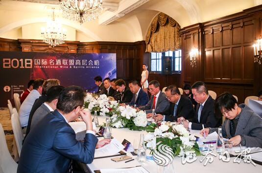 11月2日,在首屆中國國際進口博覽會前夕,“一帶一路國際名酒聯盟”成員單位五糧液、保樂力加、帝亞吉歐、人頭馬、富邑、百富門等世界名酒品牌高層齊聚上海,圍繞聯盟成員共享“一帶一路”新機遇,深化合作交流,共建互信、融合、包容的發展共同體等方面進行探討,著力推動“中國名酒走向世界,世界名酒飄香中國”。
