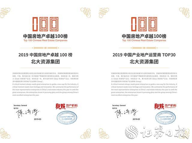 3月19—20日,觀點地產新媒體在深圳正式發布了“2019中國房地產卓越100榜”。依托企業連續多年穩健而快速的發展,北大資源再度實現排名躍升,位列榜單第57名。同時,憑借產城融合發展領域的驕人成績,北大資源還同步獲評“2019中國產業地產運營商TOP30”。