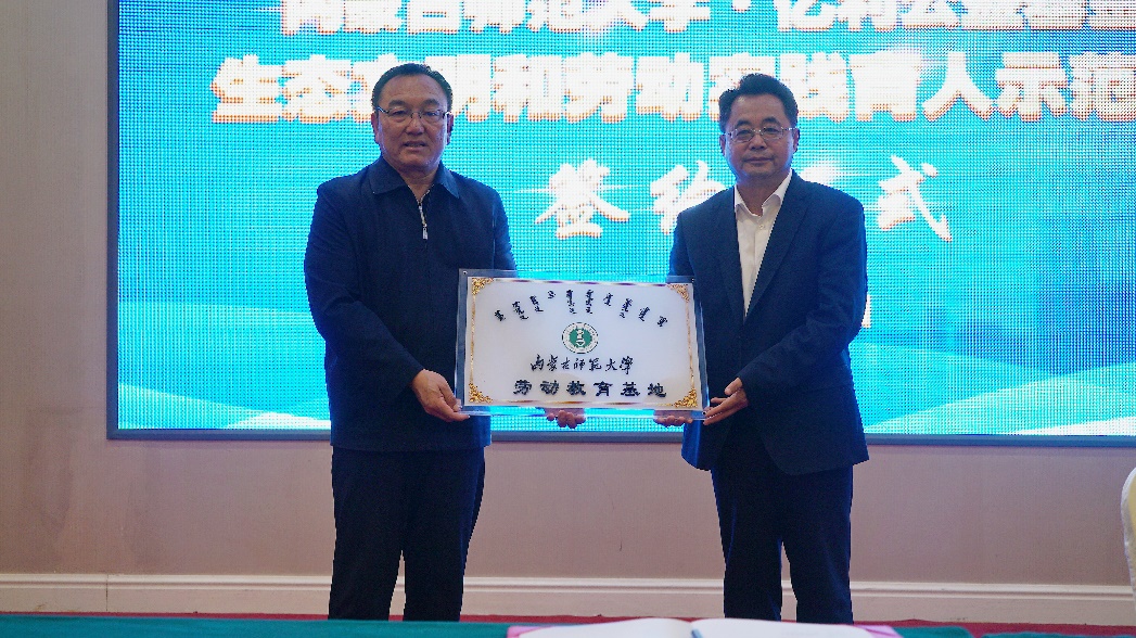 圖為內(nèi)蒙古師范大學(xué)與億利簽署《共建生態(tài)文明和勞動實踐育人示范基地合作協(xié)議書》