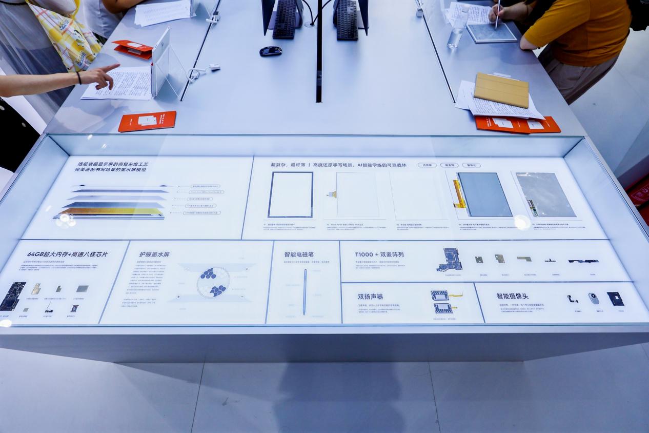 在服貿會現場,小猿學練機拆機陳列展區形態各異的電子元器件同樣吸引了大量觀眾駐足。墨水屏屏幕“不發光”的顯像原理、比液晶顯示屏復雜的屏幕結構、墨水屏平板首次加載智能攝像頭的解決方案、專業的芯片組合陣列排布、為青少年專屬定制的智能電磁筆研發細節……本屆服貿會上,小猿學練機首次深度展示了產品背后大量自主研發與深度創新的硬件細節。