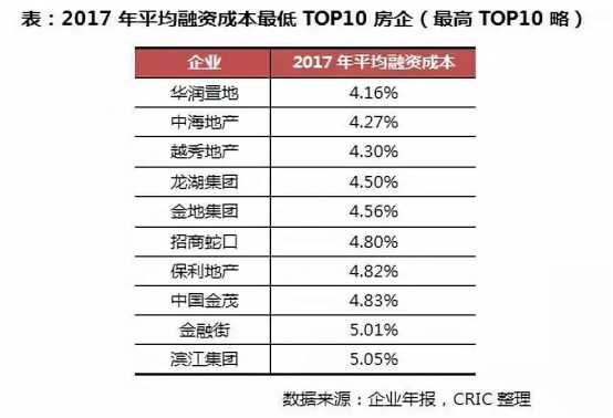 低成本:平均融資成本民營房企最低