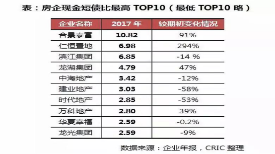 截至2017年底,龍湖現金持有量為267.6億元,現金短債比為4.79,現金較充裕,可完全覆蓋短期債務,在現金短債比最高的千億房企中,排名第一。