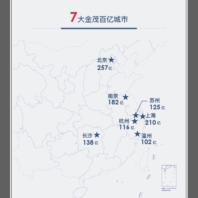 中國金茂單盤銷售業績亦非常突出。北京頤和金茂府首次開盤銷售業績達到50.6億;南京河西金茂府全年4次開盤4次售罄;深圳龍華金茂府全年銷售額超過70億。