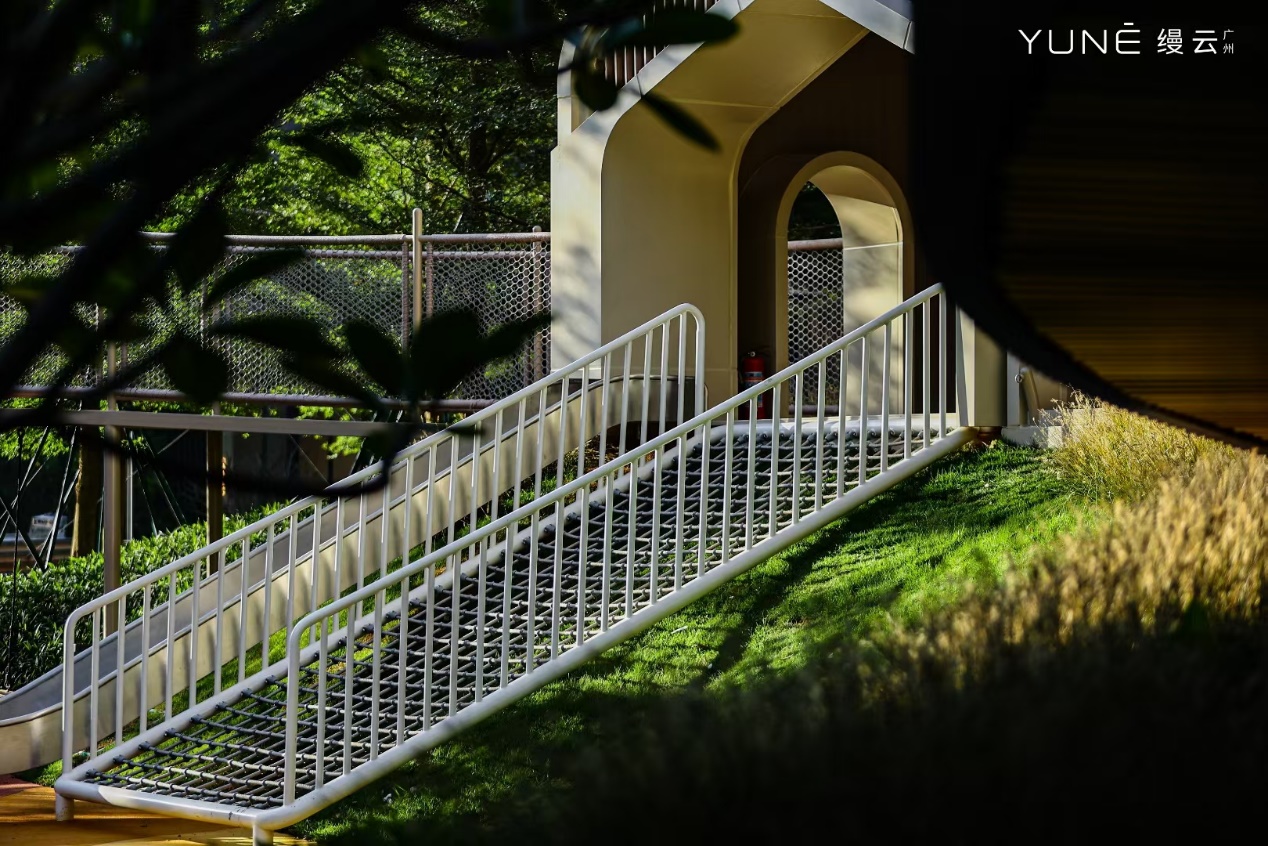 縵品牌研創的“折疊園林”體系,把對各年齡段的貼心關懷從室內延伸至戶外。在縵云廣州1.6萬m²中心園林景觀中,深度考量全齡段需求,將外部半山景觀與臺地園林的自然融合,多樣化的功能融入園林內部?!感请H云廊」,將各個組團巧妙串聯,延伸每一位業主的深度需求,無障礙的坡道設計讓活動的空間無限放大。