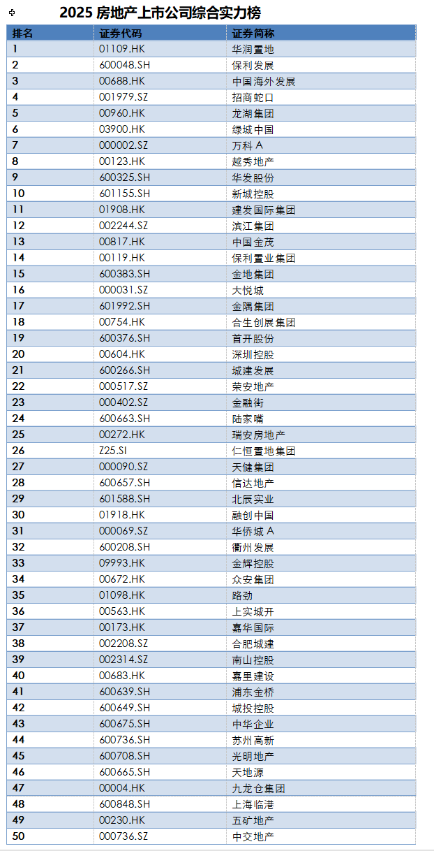 (2025年房地產上市公司綜合實力50強 主辦方供圖)