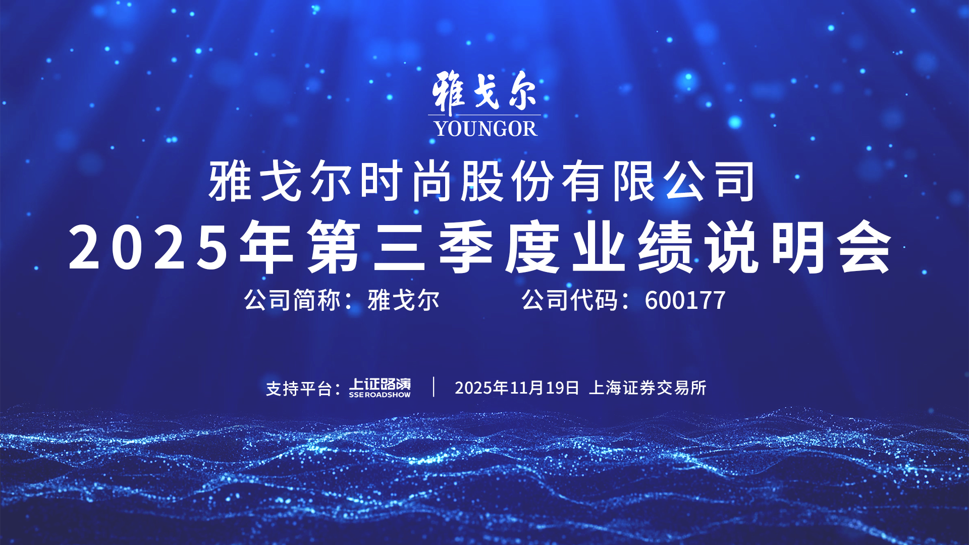 歡迎光臨證券日報網。雅戈爾時尚股份有限公司2025年第三季度業績說明會將于2025年11月19日9:30-11:00舉行。[詳細]