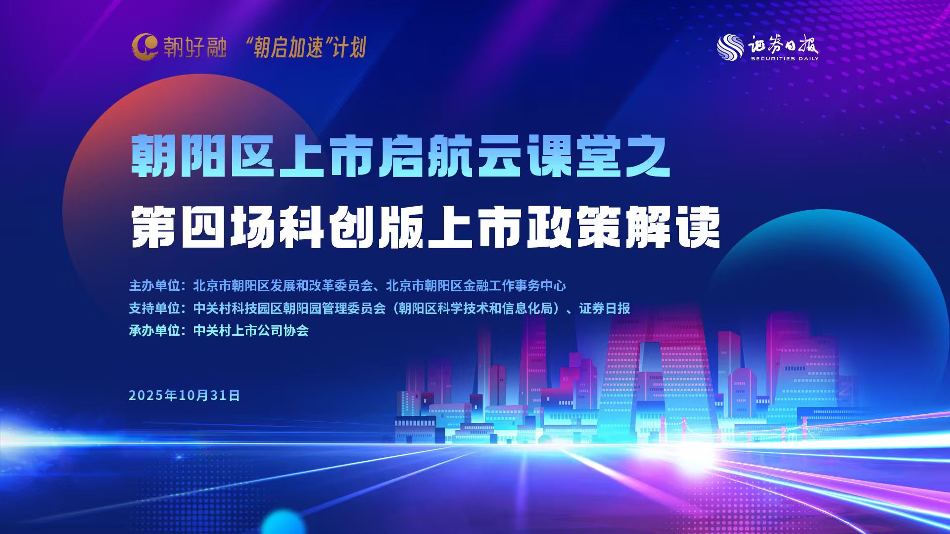歡迎光臨證券日報網。朝陽區上市啟航云課堂之第四場科創板上市政策解讀將于2025年10月31日(星期五)14:30--17:30舉行。[詳細]