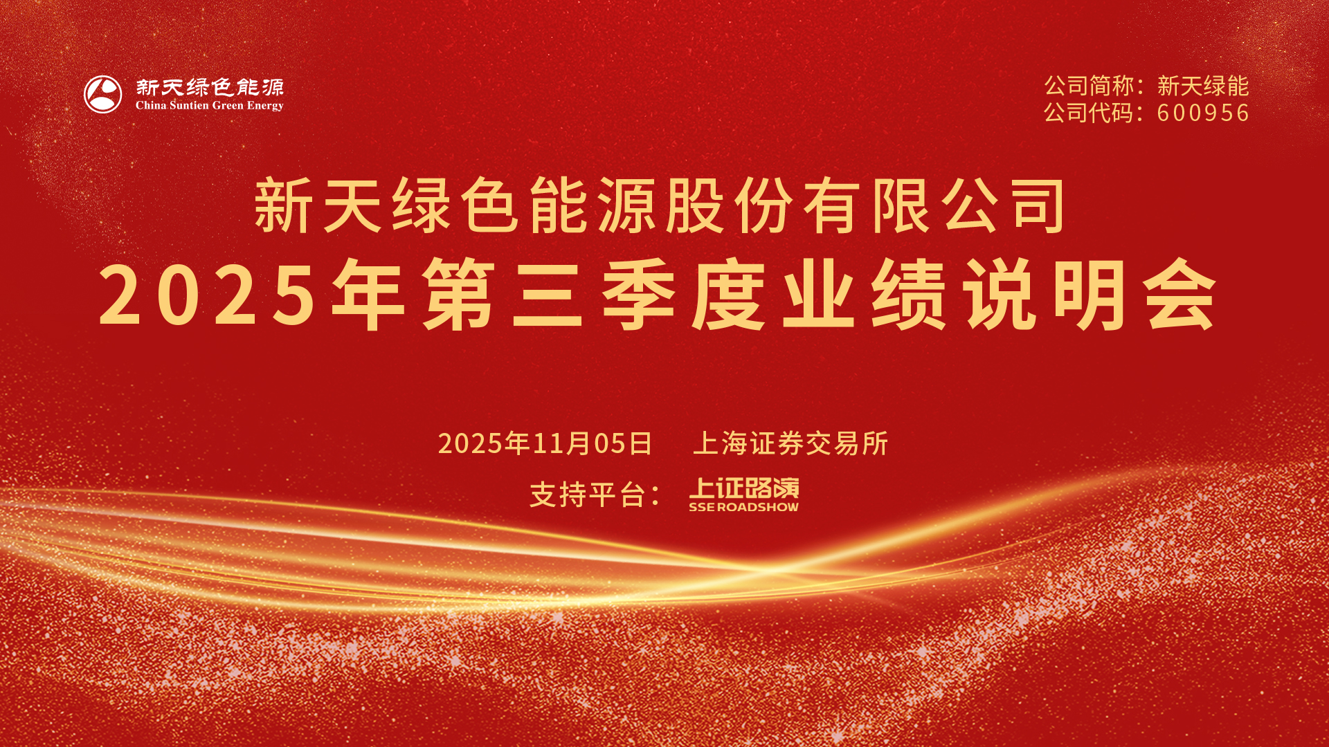 歡迎光臨證券日報網。新天綠色能源股份有限公司2025年第三季度業績說明會將于2025年11月5日10:00-11:00舉行。[詳細]