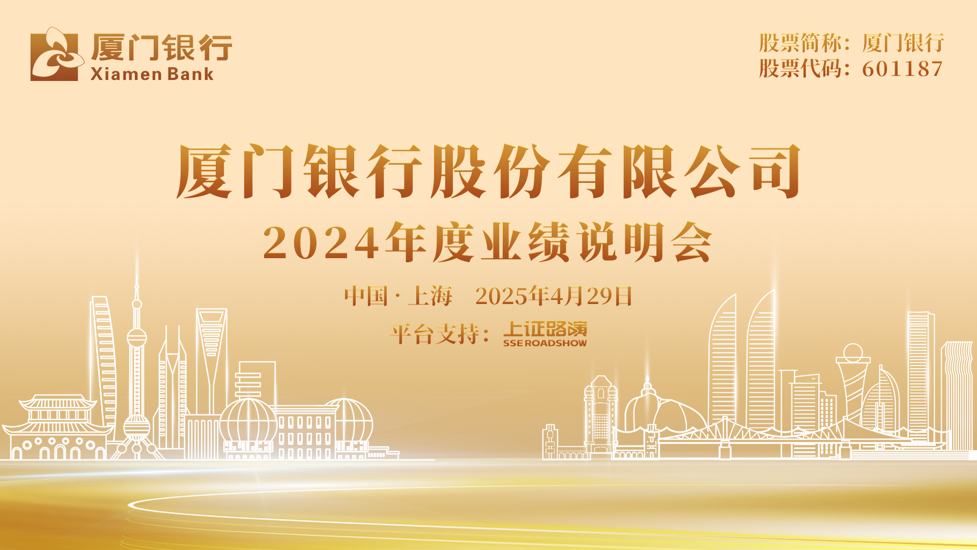 歡迎光臨證券日報(bào)網(wǎng)。廈門銀行股份有限公司 2024年度業(yè)績說明會(huì)將于2025年4月29日(星期二)15:30 ~ 17:30舉行。[詳細(xì)]