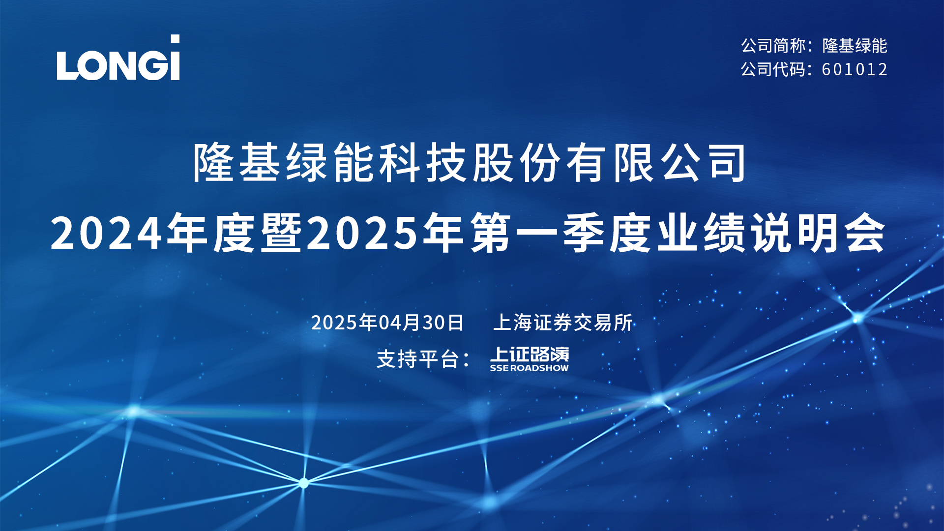 歡迎光臨證券日報(bào)網(wǎng)。隆基綠能科技股份有限公司 2024年度暨2025年第一季度業(yè)績說明會(huì)將于2025年4月30日(星期三)10:00 ~ 11:30舉行。[詳細(xì)]