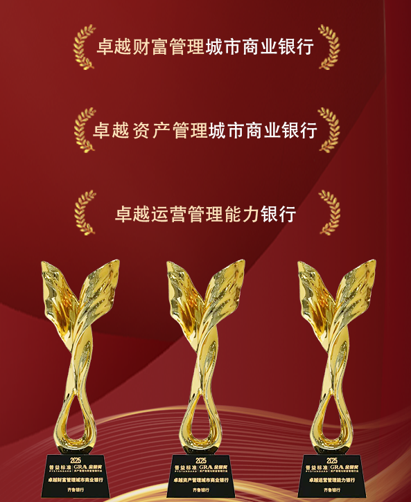 2025年6月13日,普益標準召開“2025資產管理與財富管理行業發展大會暨第5屆‘金譽獎’頒獎典禮”,齊魯銀行憑借優秀的客戶服務能力、穩健的業績回報以及良好的市場口碑,榮獲“卓越財富管理城市商業銀行”“卓越資產管理城市商業銀行”“卓越運營管理能力銀行”三項大獎,這也是該行連續四年蟬聯“金譽獎”。
