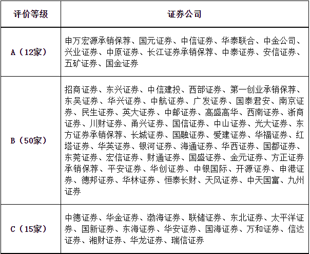 據中證協官網消息,12月9日,中證協發布2022年證券公司投行業務質量評價結果的公告,12家公司被評為A類,50家公司被評為B類,15家公司被評為C類。