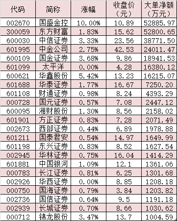 資金方面,券商板塊整體呈現(xiàn)大單資金凈流入態(tài)勢,合計吸金16.6億元。其中,國盛金控、東方財富、中信證券、中金公司、國金證券、太平洋、華鑫股份等7只個股均受到1億元以上大單資金青睞。