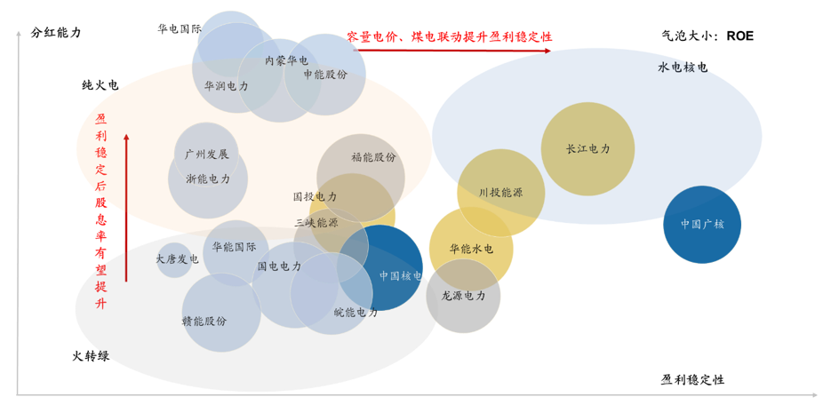 對比電力各板塊穩(wěn)定性、股息率、ROE三要素→判斷各板塊邊際變化下公用事業(yè)化加速:以各板塊穩(wěn)定性、股息率、ROE三要素對比作為線索,判斷雖然各自的公用事業(yè)化程度不同,但伴隨市場風(fēng)格變遷、火電業(yè)績及核電裝機兌現(xiàn),推演核電成為“類水電資產(chǎn)”、火電穩(wěn)定性提升,板塊公用事業(yè)化行情兌現(xiàn)且未來仍將持續(xù)演繹。