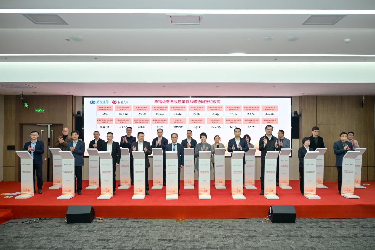 2024年12月16日,華福證券與股東單位戰略協同簽約儀式在公司福州總部舉行。福建省委金融辦、福建省財政廳、福建證監局等相關部門和福建金投、興業銀行等集團單位有關領導出席活動并見證簽約。會上,華福證券與全體19家股東單位進行戰略協同簽約,標志著公司圓滿完成增資擴股,攜手股東單位全面開啟深化合作、協同發展的嶄新篇章。