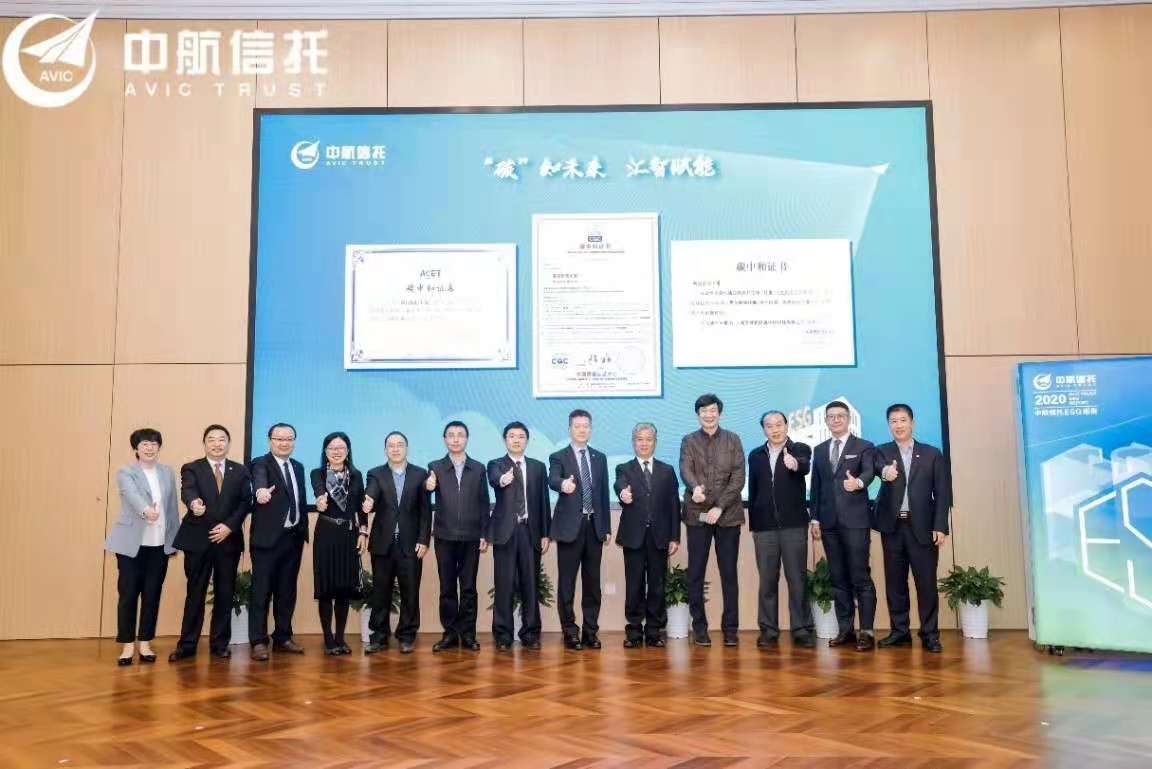 隨后,在現(xiàn)場及線上領(lǐng)導(dǎo)嘉賓的共同見證下,中航信托航信大廈碳中和證書發(fā)布儀式隆重舉行,中航信托黨委副書記、總經(jīng)理周祺接受了中國節(jié)能協(xié)會(huì)、中國質(zhì)量認(rèn)證中心、上海環(huán)境能源交易所三方分別頒發(fā)的《中航信托航信大廈2020年度碳中和證書》。