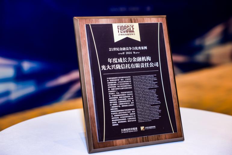 為表彰卓越金融機構,推動行業健康發展,挖掘金融機構年度優秀樣本案例,11月9日,由《21世紀經濟報道》主辦的“第十九屆21世紀金融年會暨2024年21世紀金融競爭力優秀案例評選活動”在北京舉行,光大興隴信托憑借自身優秀的業務創新轉型能力,入選“2024年21世紀金融競爭力優秀案例”并榮獲“2024年度成長力金融機構”獎項。