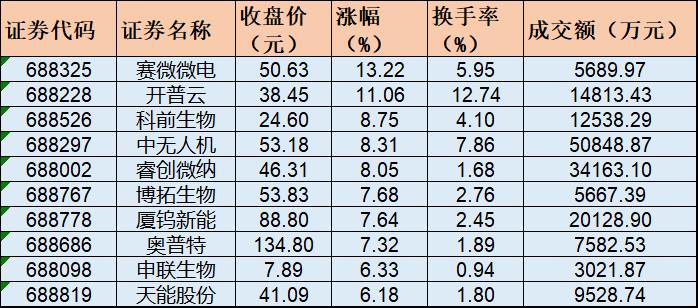 表:10月31日上午漲幅居前10的科創板做市標的股一覽